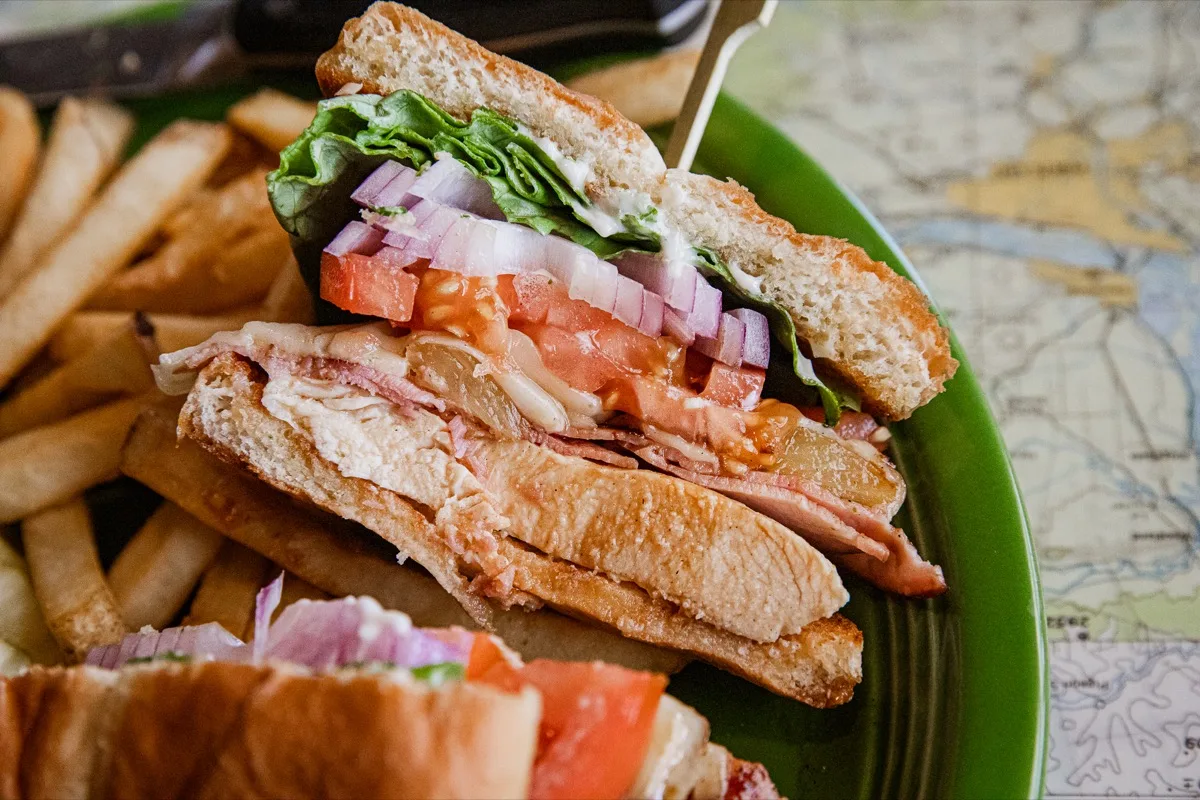 Turkey, bacon, tomato, and Swiss cheese served on a grilled sourdough – 15.99